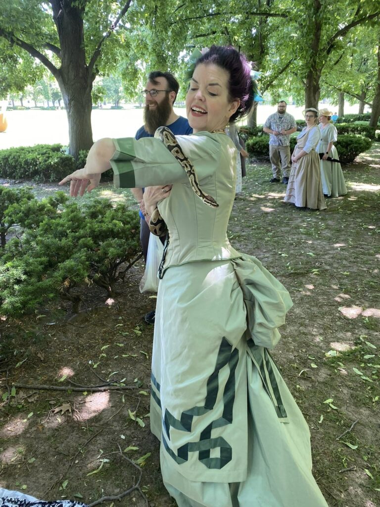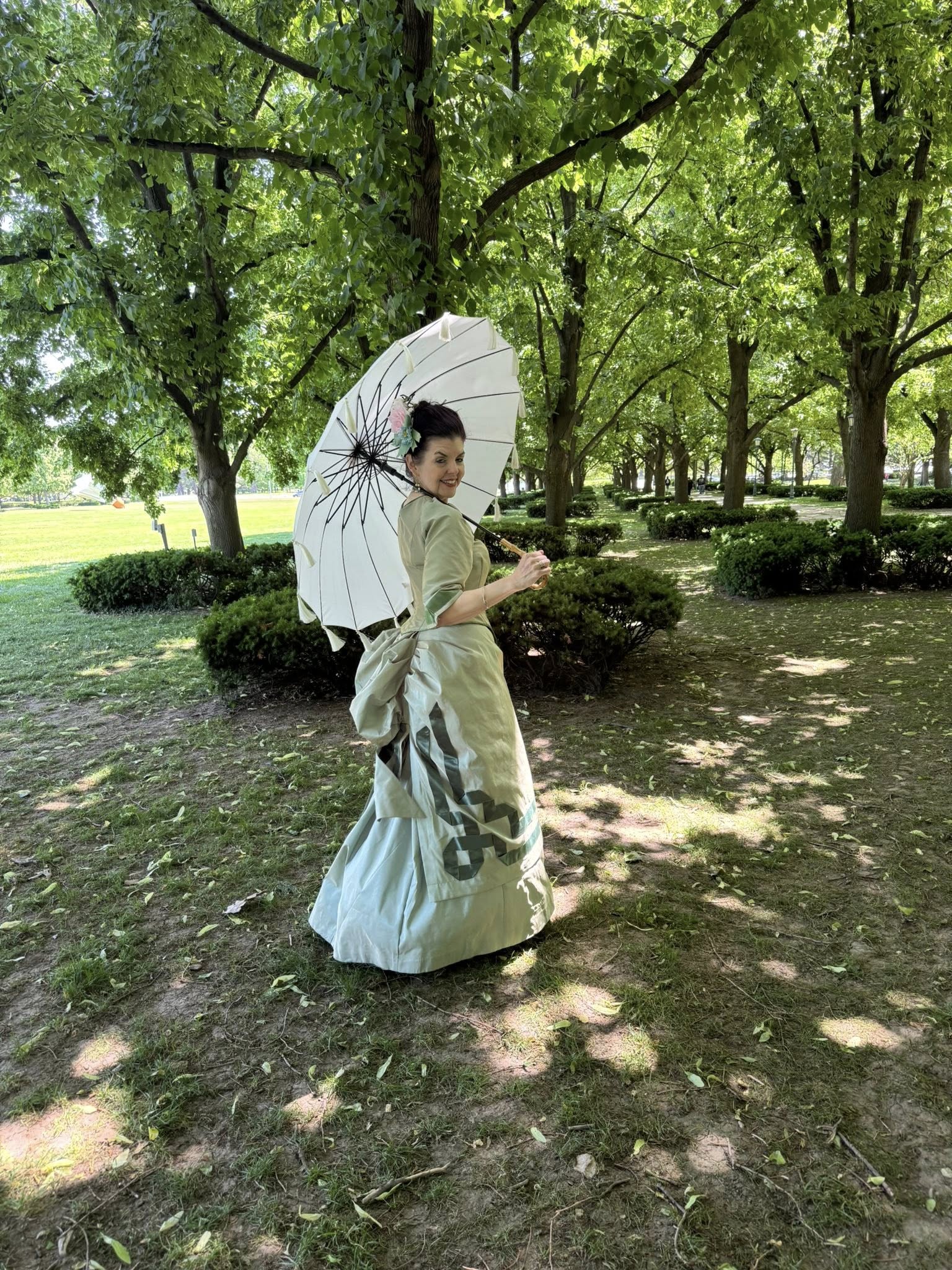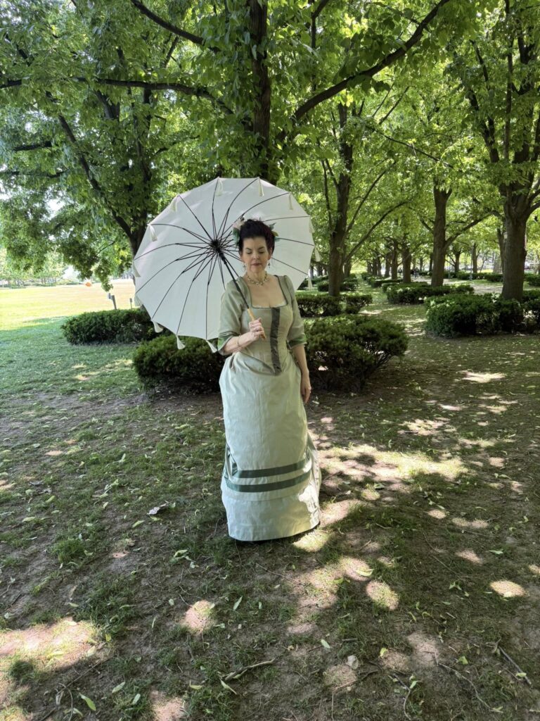 1880’s Spring dress in celery green May 20, 2025August 12, 2025 Yosa AddissHistoric Clothing Projects Many Truly Victorian patterns used here!Bodice:TV460 – 1885 Cuirass Bodice, sleeves from TV410Overskirt: TV304 – 1875 Square OverskirtUnderskirt: TV261 – 1885 Four-Gore underskirt